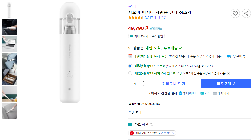 사용 후기: 샤오미 미지아 차량용 핸디 청소기는 작고 가벼운 점이 매우 마음에 들었습니다. 차량의 좁은 공간에서 이동하며 청소하기에 안성맞춤이었습니다. 단, 배터리 시간이 짧아서 큰 청소에는 적합하지 않지만, 평소에 작은 쓰레기를 청소하기에는 매우 유용합니다. 디자인도 예쁘고 차량에 두면 세련된 느낌이 들었습니다.