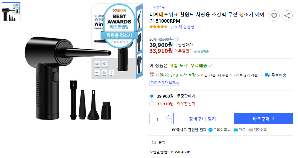 사용 후기: 디씨네트워크 월윈드 청소기는 강력한 성능을 자랑합니다. 차량 내부뿐만 아니라 매트나 에어컨 필터 청소에도 큰 도움이 되었습니다. 특히 에어건 기능은 생각보다 유용했습니다. 다만, 무게가 무거워 오래 사용하면 손목이 아플 수 있어 짧게 나누어 사용하길 권장합니다. 가격대는 높지만, 그만큼 성능이 뛰어나 가격 대비 만족도가 높습니다.
